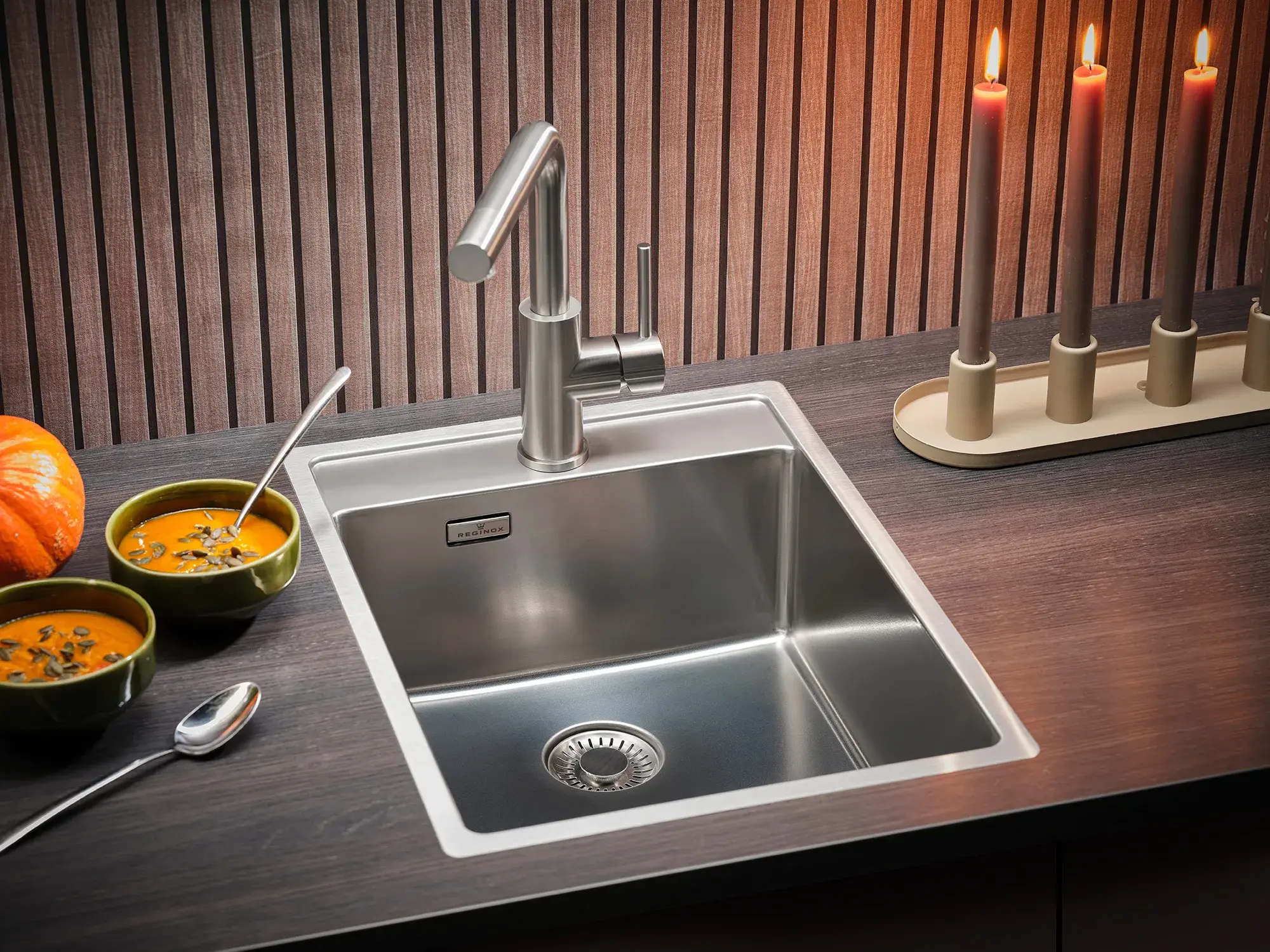 REGINOX Spülen lassen sich mühelos installieren und stehen für eine saubere Verarbeitung mit attraktiven Details an den oberen Rändern. Sie brauchen lediglich die Arbeitsplatte auf Maß auszuschneiden und die Spüle mit den mitgelieferten Klemmen und dem Montageband zu montieren. Alle Spülen werden mit einer übersichtlichen Anleitung geliefert. Neben dem flächenbündigen Einbau sind genauso auch Flacheinbau und Unterbau möglich.